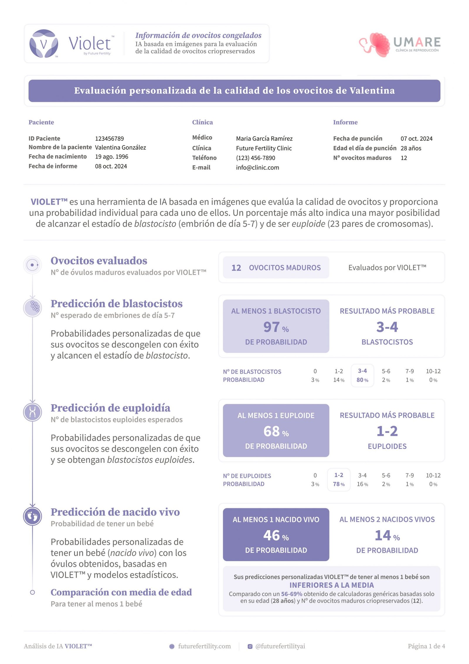 Si nuestra intención es preservar óvulos para el futuro, Violet nos ayuda a comprender mejor las posibilidades de éxito con los óvulos que hemos congelado.